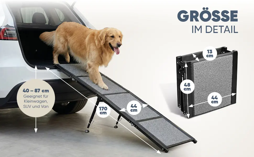 PAROWAU Hunderampe Auto klappbar 120kg extra stabil mit Zusatzfuß 170x44cm